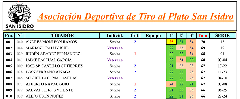CLASIFICACIÓN TIRADA SAN VALERO - 50 FU - 27/Enero/2024 |