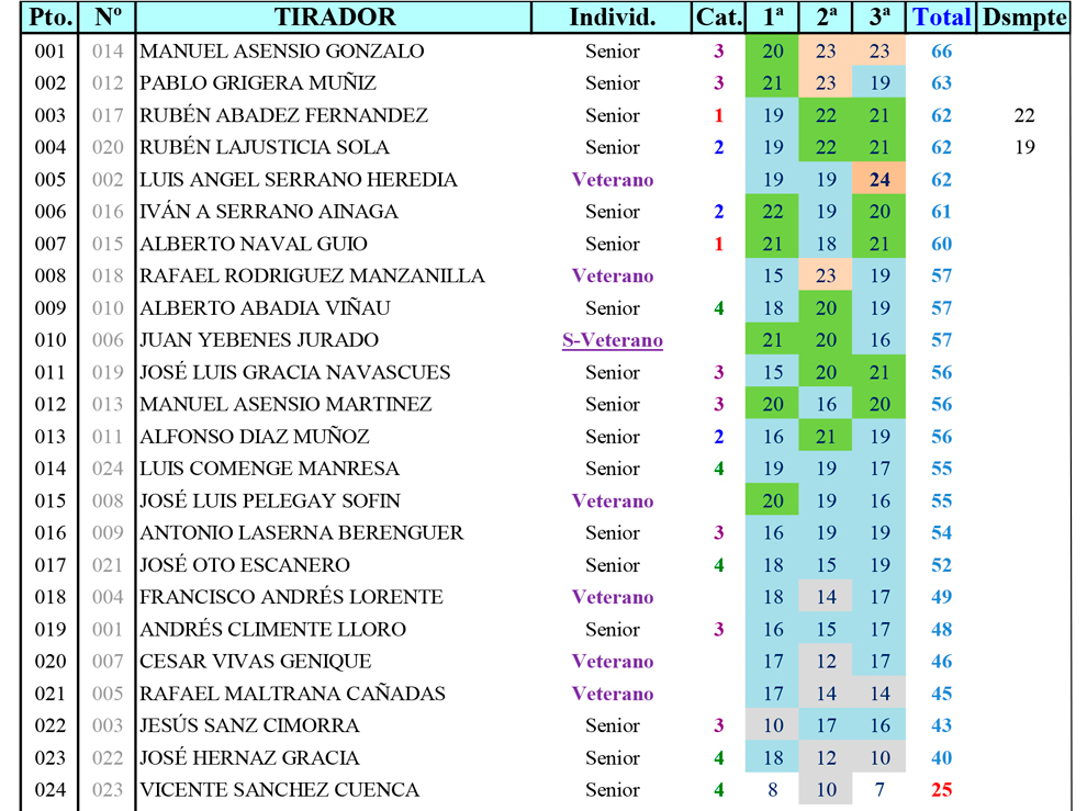 | CLASIFICACIÓN TIRADA SAN VALERO - 50 FU - 27/Enero/2024 |