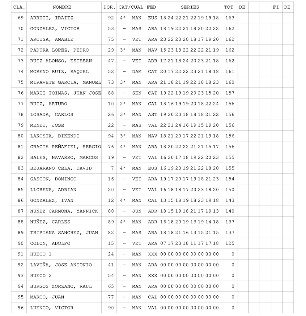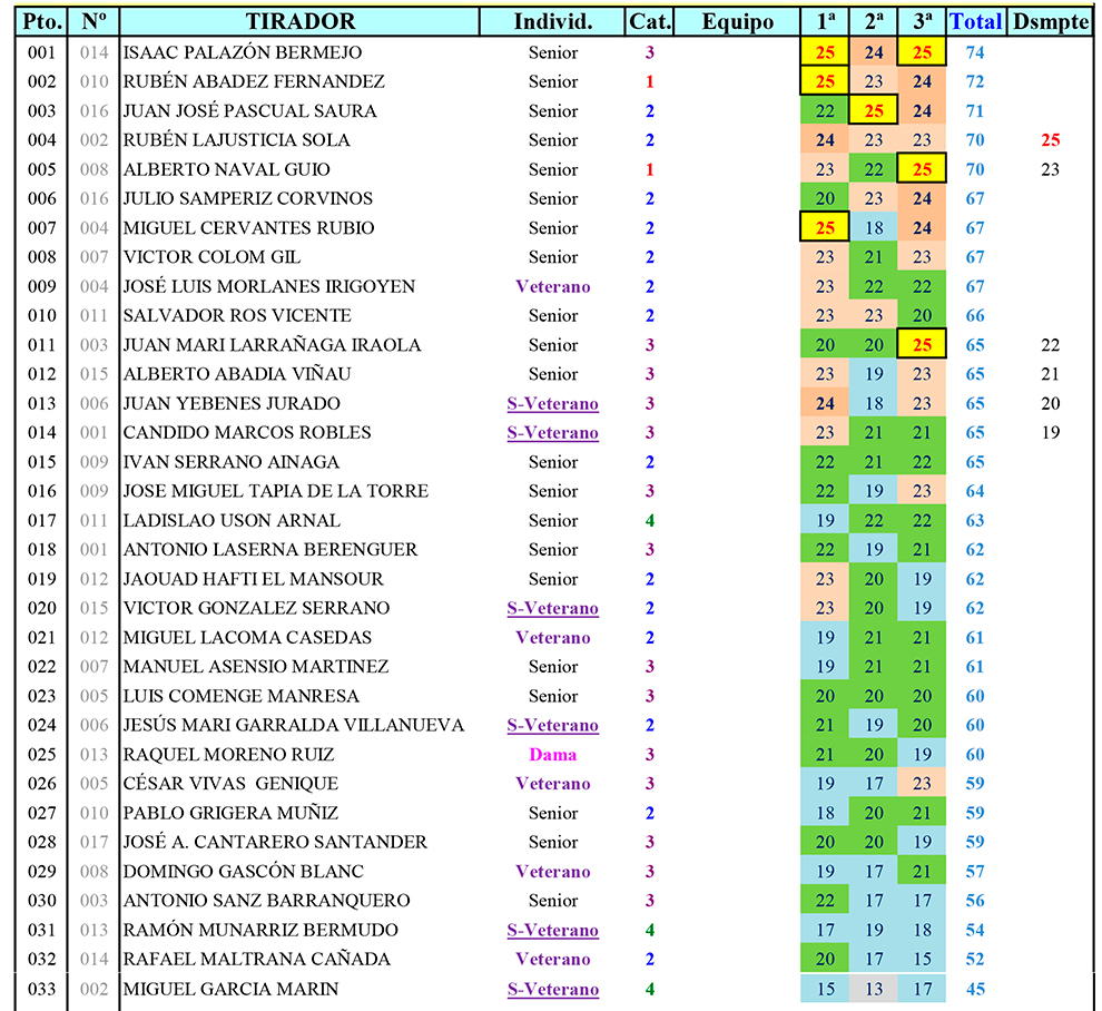 CLASIFICACIÓN TIRADA SAN VALERO - 50 FU - 27/Enero/2024 |
