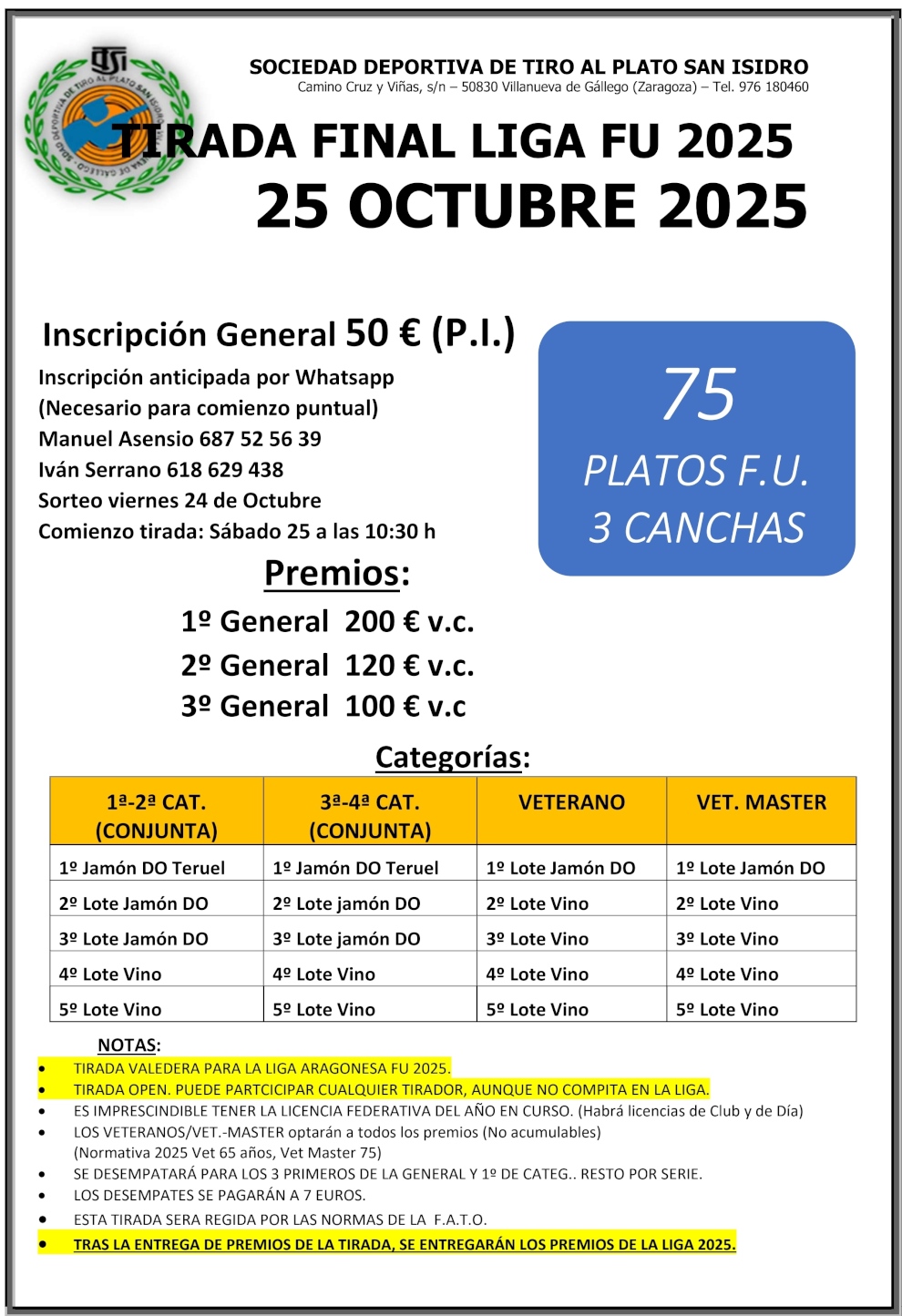 TIRADA FINAL LIGA FU 2025 - 75 FU - 25/OCTUBRE/2025 |